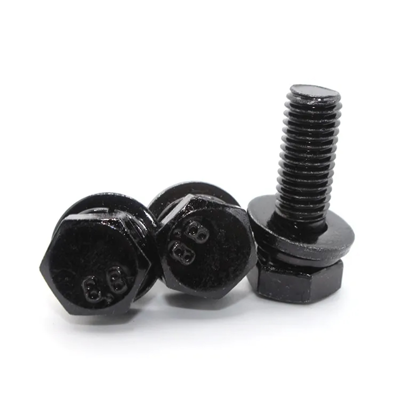 Neart ard:Bolt heicsidheachúlach ocsaíd dubh le washer an earraighDéanta as cruach chóimhiotail 8.8 grád le neart teanntachta den scoth agus friotaíocht lomadh, atá oiriúnach do chásanna nasctha ard-ualach.