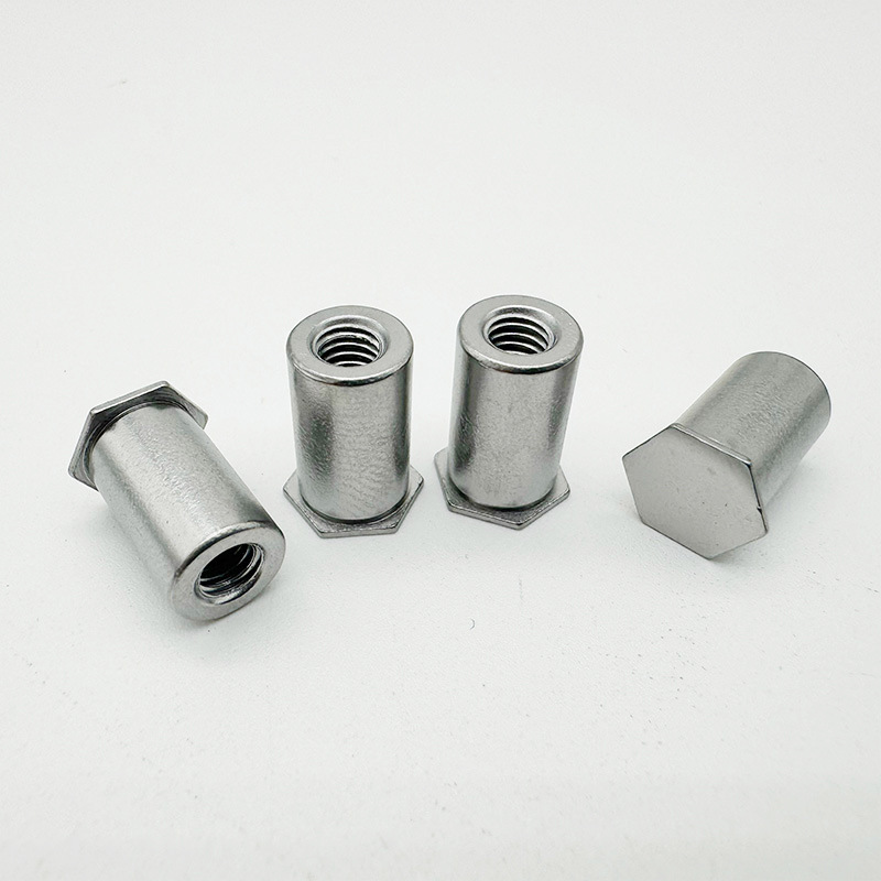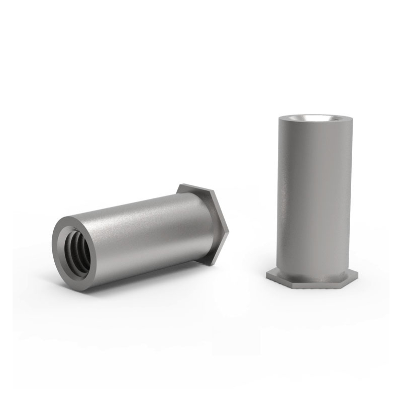 Poll dall ceann cothrom heicseagán riveted Is ceanglóir é cnó atá oiriúnach d'ábhair tanaí. Tá sé láidir agus durable, agus níl an snáithe éasca a chaitheamh. Nuair a shuiteáil tú é, déanann an cnó mífhoirmiú go meicniúil (cosúil le seamadh) chun an t -ábhar a chur faoi ghlas.