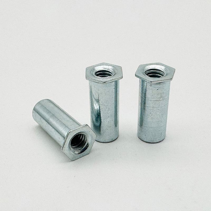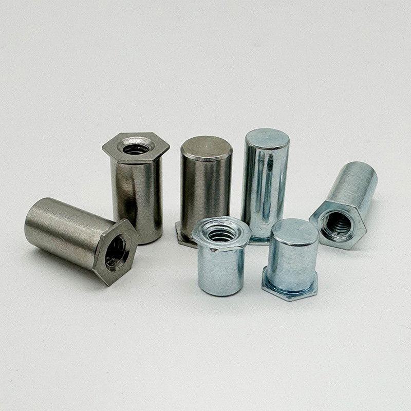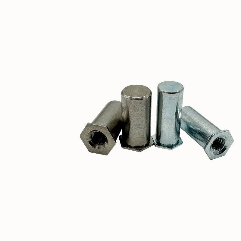 Is ceanglóir speisialaithe é an colún cnó rivet cruach charbóin le snáitheanna inmheánacha. Tá sé déanta chun snáitheanna diana, ualach a chruthú in ábhair tanaí nó sobhriste áit nach féidir leat táthú a úsáid. Ag gníomhú mar ancaire buan, tá comhlacht heicseagánach aige a choisceann é ó sníomh le linn na suiteála. Titeann an colún log amach nuair a úsáideann tú uirlis cnó rivet, ag cruthú bolg soladach ar an taobh dall.