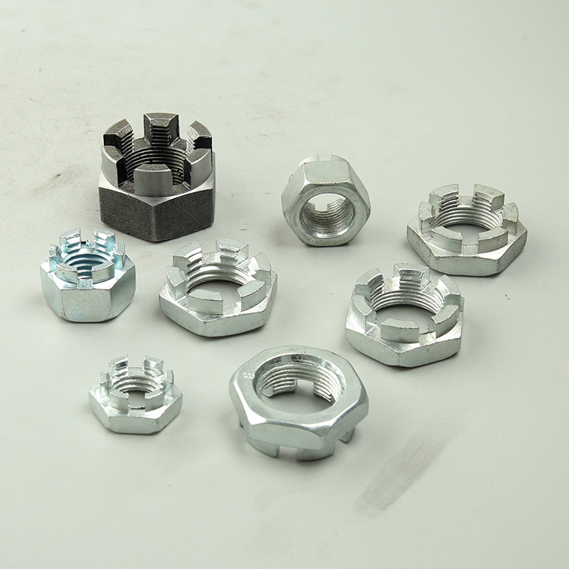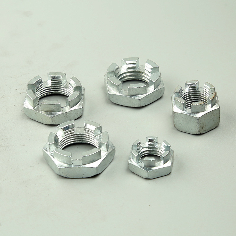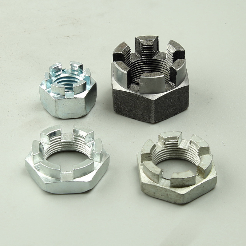 Is comhpháirt ríthábhachtach é an cnó coróin urraithe dúbailte seo le sliotán sa chóras tarchuir stiúrtha, sa chóras fionraí, agus sa struchtúr acastóra gluaisteán. Is í an phríomhfheidhm atá aige ná comhpháirteanna a shocrú mar an deireadh slat stiúrthóra stiúrtha nó comhpháirt liathróid, agus is féidir é a chur faoi ghlas go daingean le biorán oscailte.