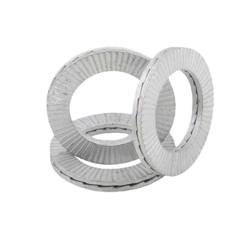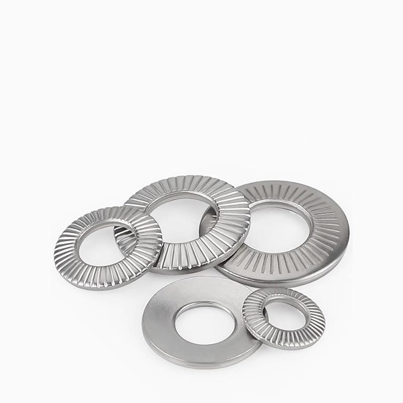 AnWasher Glasála Féin -Ghlasála Dé Diosca Dédéanta as Cruach dhosmálta SAE 304/316 nó astm A325 Cruach Carbóin, Meascadh Neart agus Solúbthacht. Oibríonn leaganacha cruach dhosmálta níos fearr i dtimpeallachtaí meirgeacha nó fliucha, agus tá neart teanntachta níos láidre ag cinn cruach charbóin do phoist tromshaothair. Baineann siad úsáid as cóireálacha teasa cosúil le múchadh agus faghartha chun an chruas a dhéanamh ceart (HRC 38-45) agus chun tuirse a chomhlíonadh. Maireann na roghanna ábhar seo níos faide agus tá sé níos iontaofa ná níolón nó leicneáin aonchiseal.