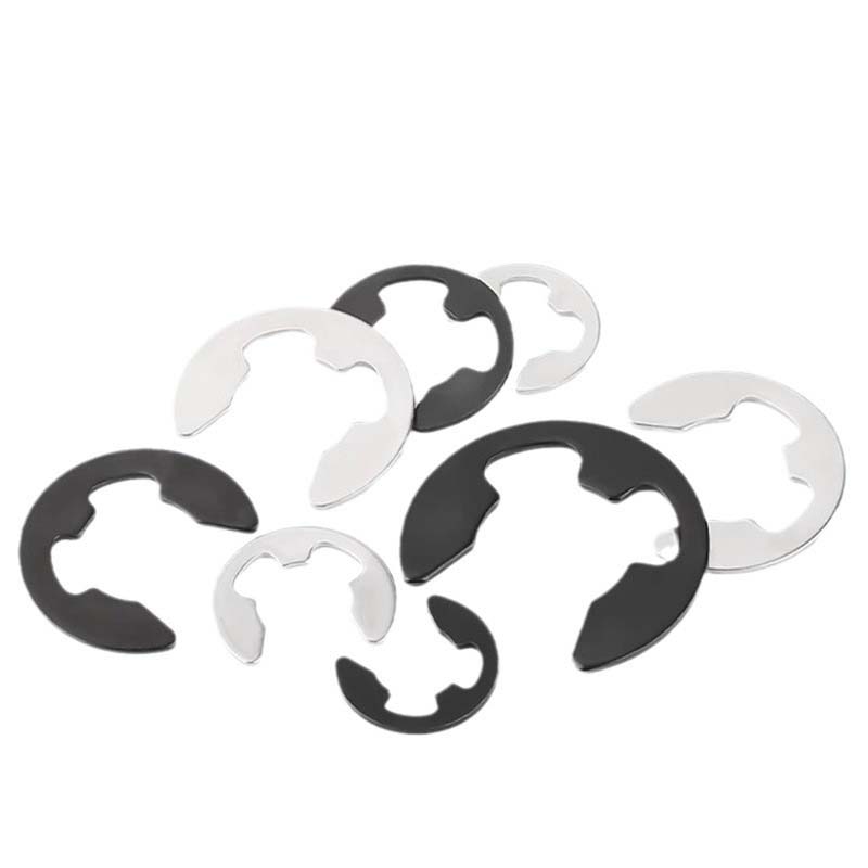 Tá fáinní coinneála de chineál E ar fáil i méideanna caighdeánacha agus saincheaptha le haghaidh claiseanna idir 1 mm agus 300 mm ar trastomhas. Tá fáinní coinneála inmheánacha oiriúnach do chodanna atá suiteáilte i bpoill, agus tá fáinní coinneála seachtracha oiriúnach do shafts. Tá dhá mhéid chaighdeánacha, méadrach agus impiriúil ann, a chomhlíonann caighdeáin innealtóireachta domhanda. Tá an lamháltas tríthoiseach daingean (± 0.05 mm) chun a chinntiú go bhfuil sé oiriúnach gan sleamhnú. Soláthraíonn Xiaogu® cairteacha mionsonraithe a liostálann an tiús, an leithead agus an méid groove a theastaíonn den fháinne coinneála. Má tá cumraíocht neamhchaighdeánach agat, is féidir leat an fáinne coinneála a dhearadh go saincheaptha ionas gur féidir é a shuiteáil go réidh ar innealra speisialta, robots nó feistí micrileictreonacha.