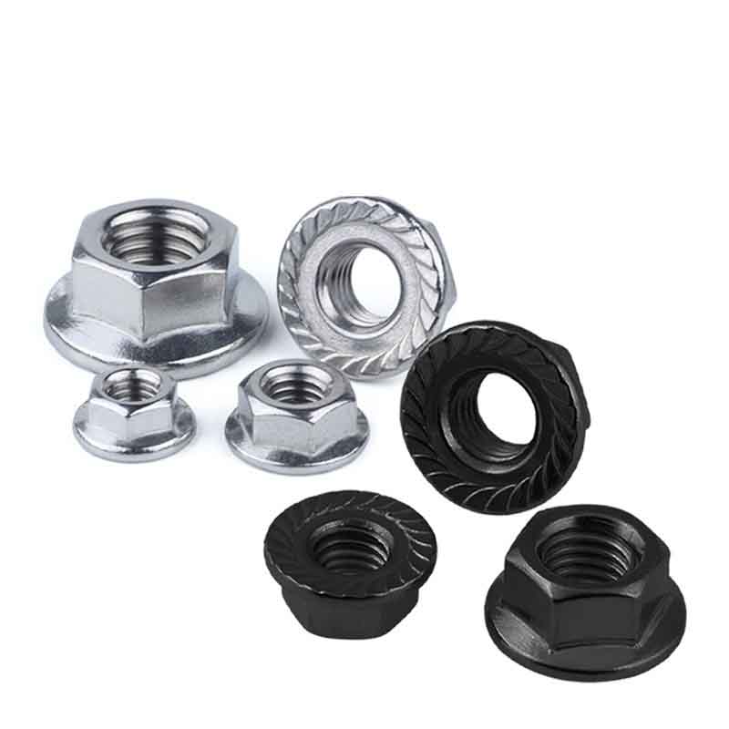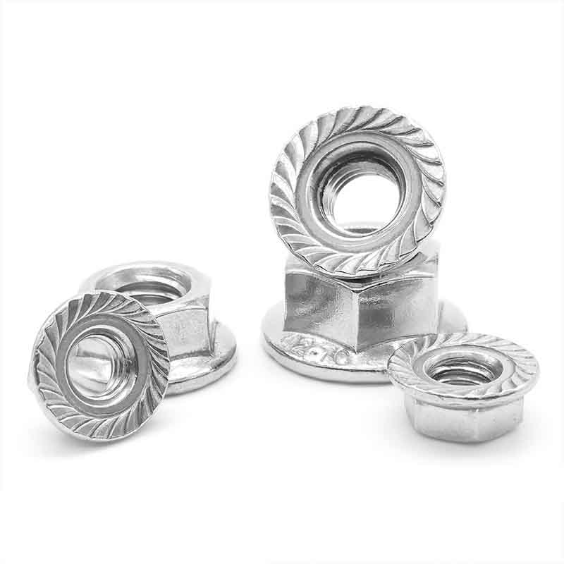 Tá leaganacha cnó glasa againn dár gcnónna flange heicseagán d’fhoirgnimh thionsclaíocha, is iad sin na cinn a fhanann daingean ina n-aonar. Tá píosa neamh-mhiotail acu, de ghnáth níolón, greamaithe isteach sa chuid uachtarach de shnáitheanna an chnó. Nuair a dhéanann tú an cnó níos doichte, cuimilteann an píosa seo i gcoinne snáitheanna an bolt. Cruthaíonn sé sin cineál "chasmhóiminte fanachta" a chuireann bac air teacht scaoilte, fiú le creathadh, turraingí nó athruithe teochta. Agus coinníonn siad fós na buntáistí ard-neart agus ualach-leathadh a bhaineann leis an dearadh flange.