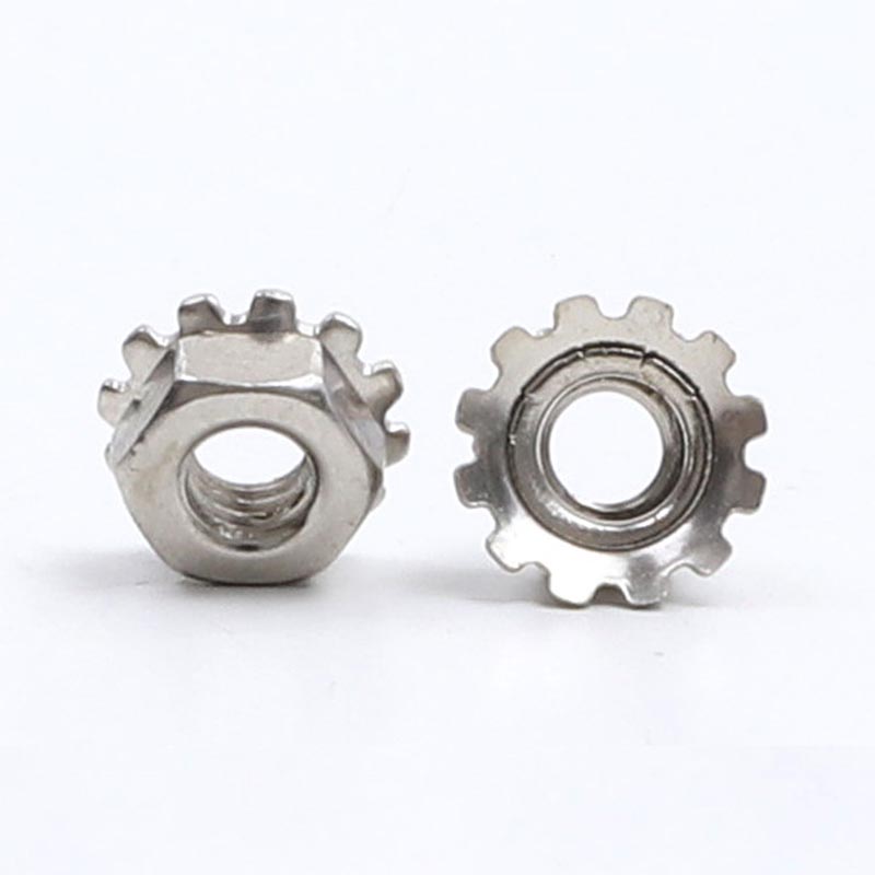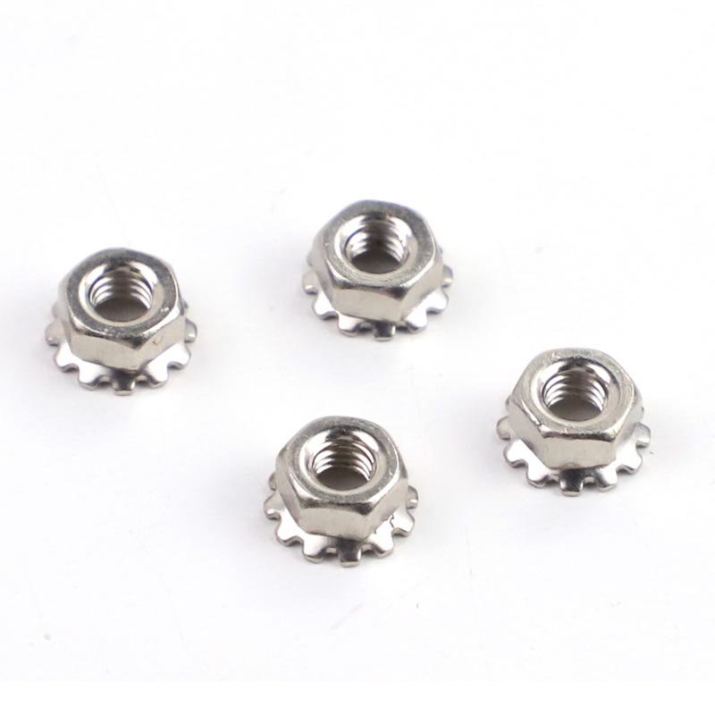 Ancnó washer earraigh heicseagáinIs ceanglóir dhá chuid é a phléascann cnó caighdeánach heicsidheachúlach neamh-snáithe le washer earraigh atá tógtha isteach. Suíonn an washer faoi bhun ancut, teannas a chur i bhfeidhm chun cur in aghaidh scaoilte ó chreathadh nó ó athruithe teirmeacha.