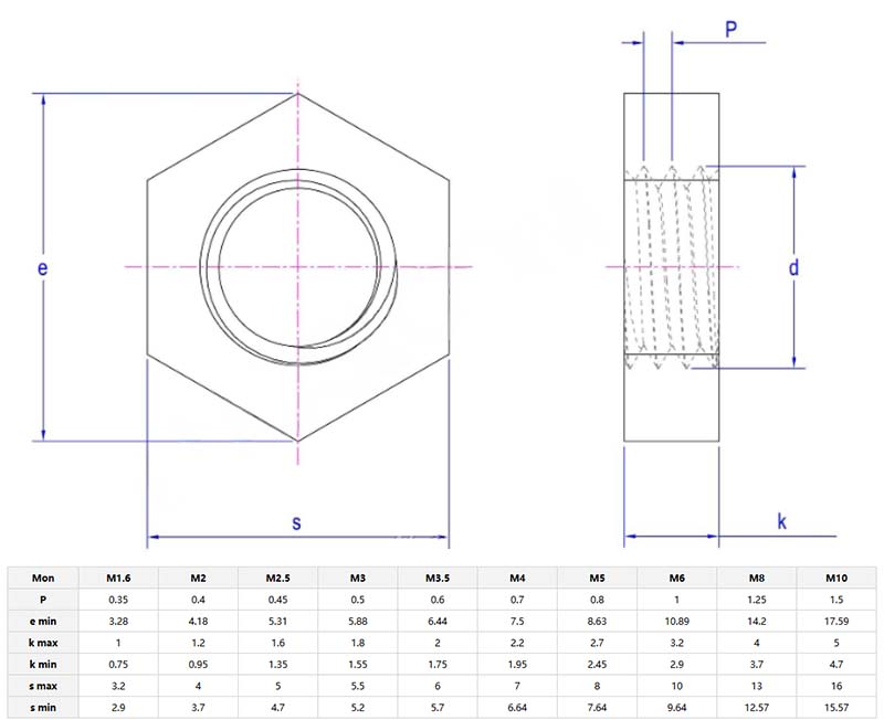 Cnó tanaí heicseagán gan chamferIs cruth cothrom, heicseagánach é le himill ghéara agus níl aon chamfering ann. Ar fáil i méideanna ó M3-M16, úsáidtear iad chun páirteanna breise a sheirbhísiú nó a chur le chéile.