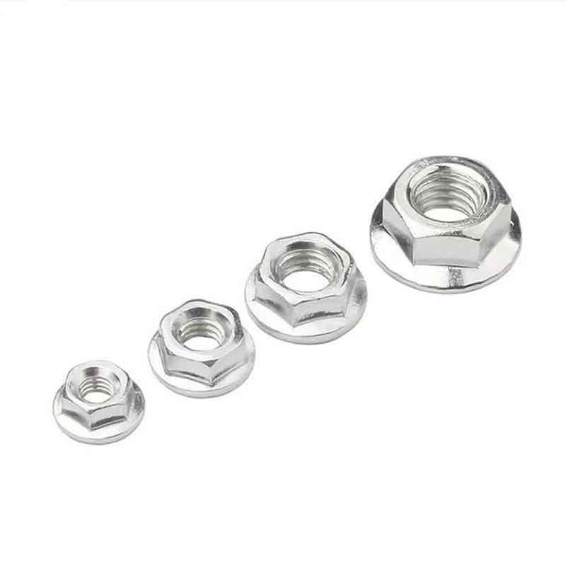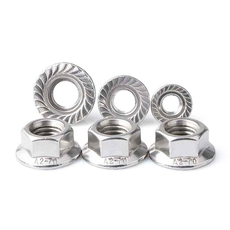 Is beag serrations ar bun an flange. Cuidíonn siad seo leo cur i gcoinne an chreathadh go han-mhaith, ionas nach dtagann siad scaoilte nuair a bhíonn ualaí gluaiseachta ann. Is buntáiste mór é sin i gcomparáid le cnó rialta a úsáid le washer ar leith.