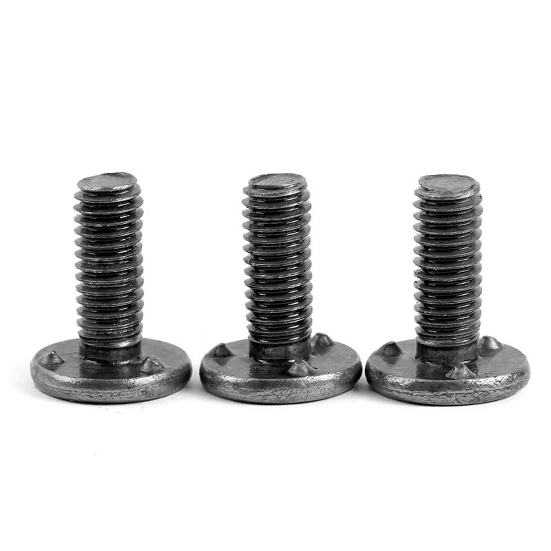 Tá trí fhréamhshamhail bheaga ag na scriúnna méadracha seo in aice leis an gceann. Bain úsáid as gunna táthúcháin chun iad a bhrú ar an miotal. Díreoidh na protrusions láithreach an teas, ag leá an pointe agus ag cruthú an scriú ceann a chomhleá leis an dromchla. Cruthaíonn sé seo go tapa pointe snáithithe láidir, flush-suite.