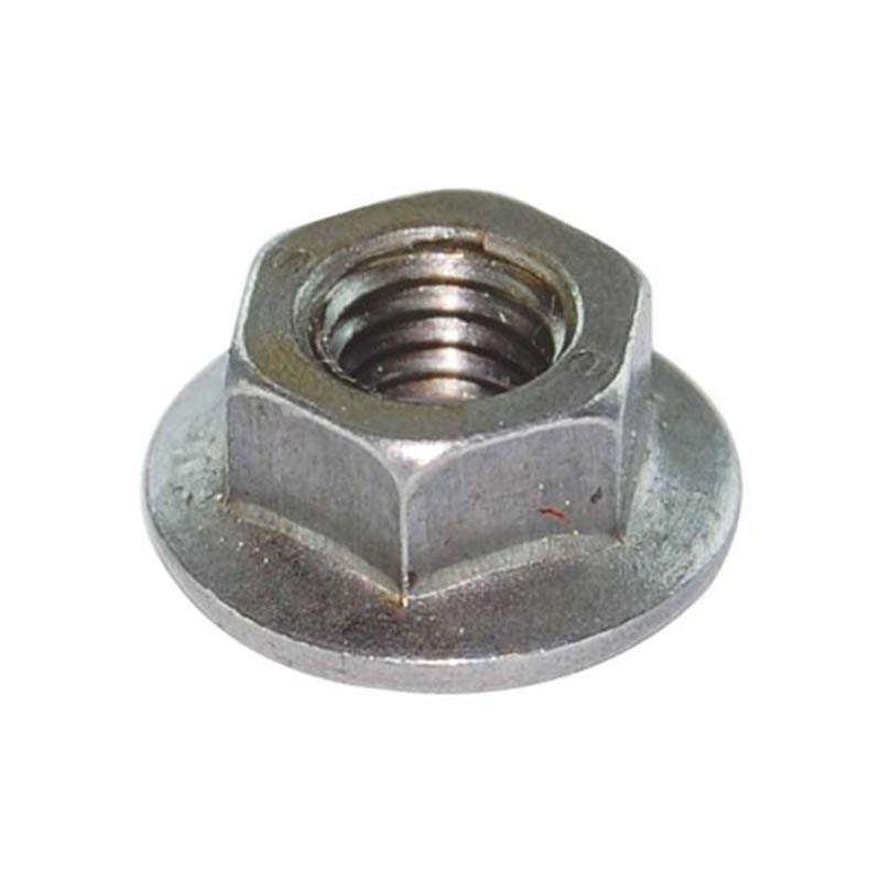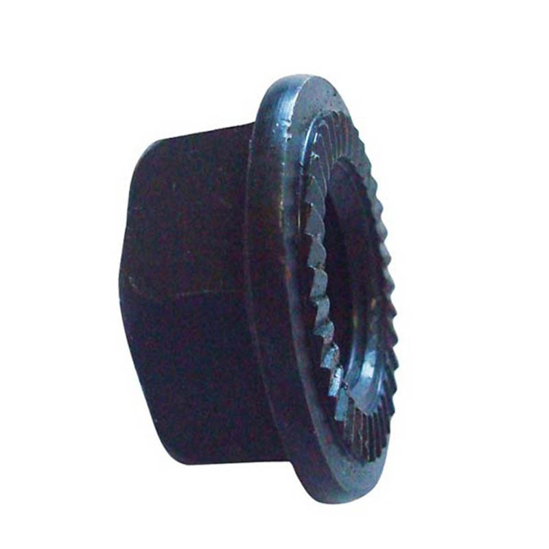 | Cruach Meáncharbóin | Is féidir na cnónna glasála heicseagánacha flange serrated seo a úsáid ar chomhpháirteanna fionraí feithicleach nó ar hitches leantóra. Tá cóireáil teasa déanta ar an cruach a úsáidtear dóibh, agus mar sin is féidir leis an struchtúr serrated gabháil go daingean gan briseadh. Is féidir leo creathadh a sheasamh le linn tiomána mhórbhealaigh nó ualaí troma gan scaoileadh. De ghnáth, tá siad brataithe le ciseal since tiubh. |