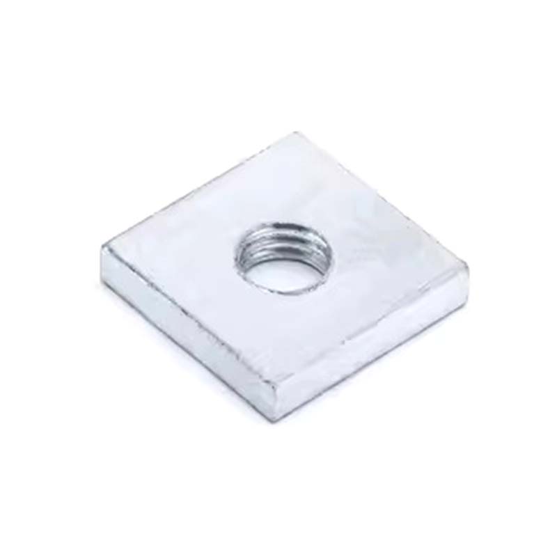 Ancnó tanaí cearnógach gan chamferTá poll snáithithe ag an gcorp. Tá sé níos tanaí ná cnónna caighdeánacha (2-4 mm tiubh de ghnáth) agus tá sé oiriúnach do bhearnaí cúnga. Ar fáil i cruach dhosmálta agus i cruach charbóin.