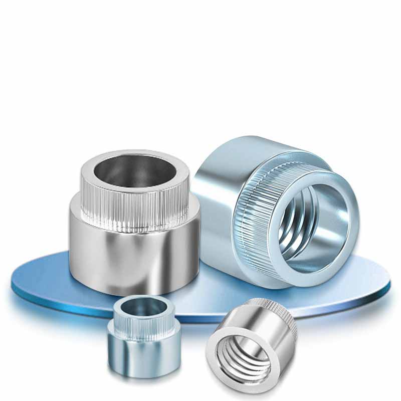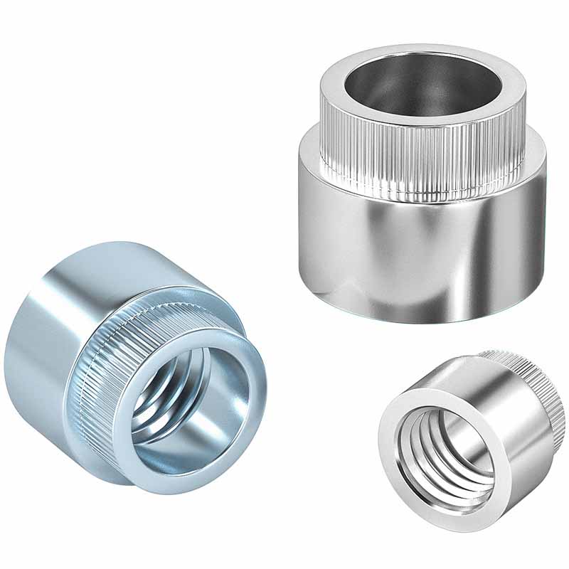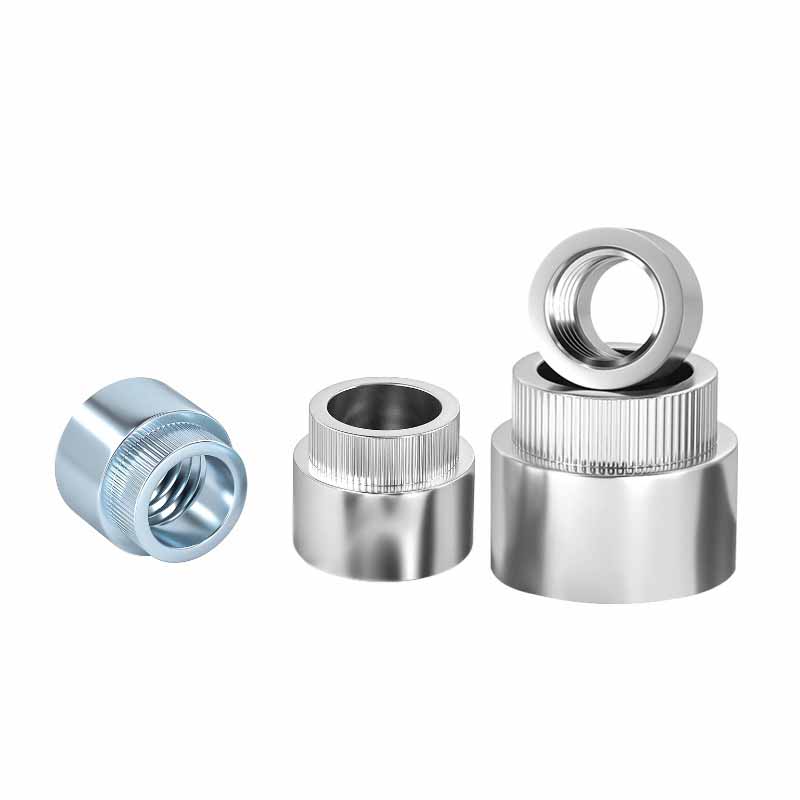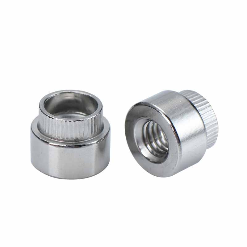 Idir an dá linn, tá snáitheanna rialta taobh istigh den chuid cnó cruinn. Déanann an flange mór cniotáilte dhá phost: leathnaíonn sé an fórsa fáiscthe amach mar sin ní fhágann sé an t -ábhar tanaí, agus greamaíonn an knurling (na hiomairí beaga sin) isteach sa dromchla chun stop a chur leis an tor seamanna iomláin ó shnámh nuair a chasann tú bolt isteach nó amach.