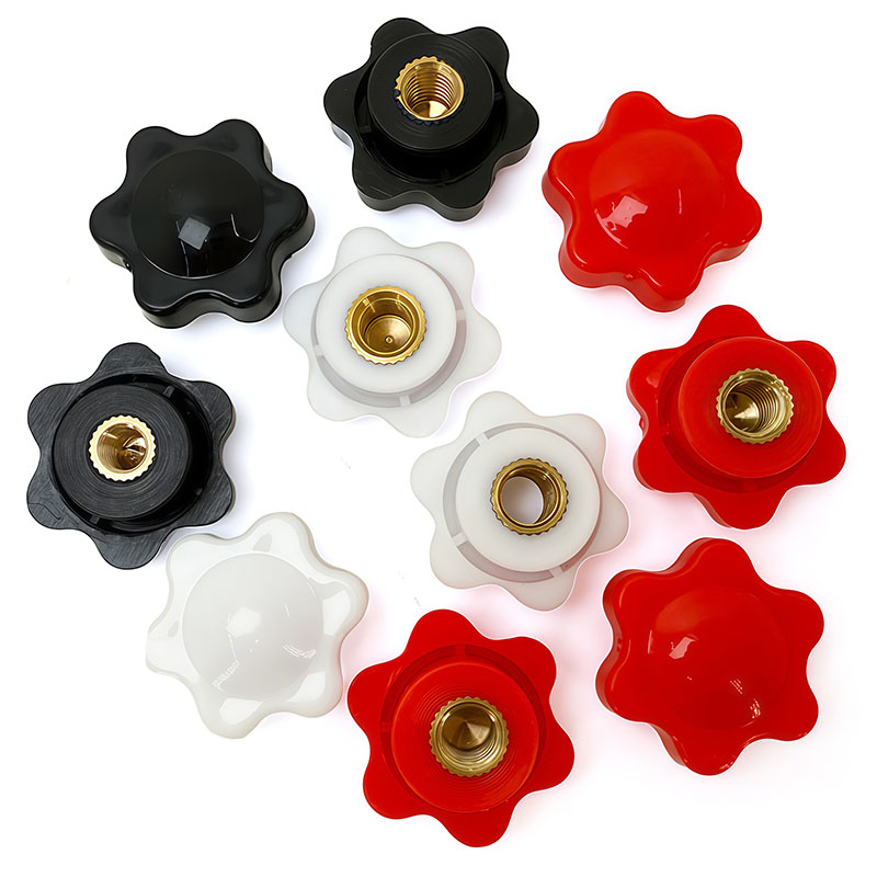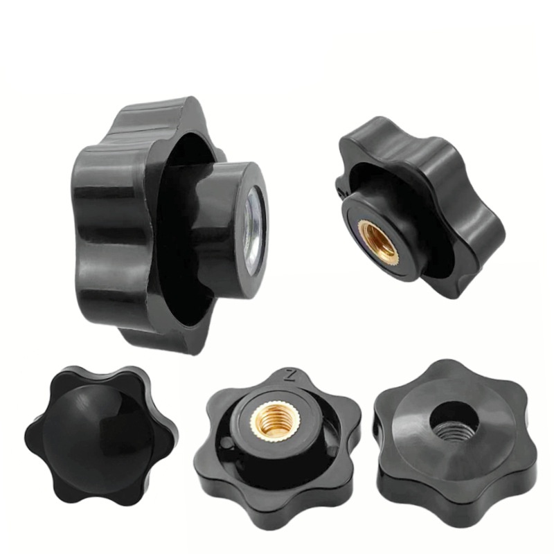 A: Tá trí phríomhfhachtóir le breithniú agus Star Knob á roghnú trí Chnó Cineál Poll: Ar dtús, an méid snáithe, ar chóir dó a bheith ag teacht le méideanna méadracha cosúil le M4 agus M6 nó méideanna impiriúla cosúil le 1/4 "-20; sa dara háit, an tiús ábhair, is é sin, tiús an tsubstráit gléasta;