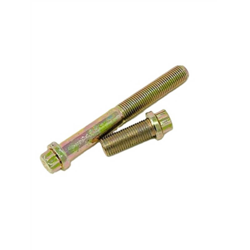 Tá cruth caighdeánach, praiticiúil ag na Boltaí Flange Pointe 12 Pointe Cruach seo, gan aon sonraí maisiúcháin breise. Is ceann 12-thaobh é an barr, a dhéantar chun oibriú le soicéad meaitseála 12 phointe le haghaidh géarú nó scaoileadh. Díreach faoin gceann tá flange leathan, cothrom a oibríonn cosúil le leicneoir ionsuite, mar sin ní bheidh washer ar leith ag teastáil uait don chuid is mó de phoist. Tá an seafta faoi bhun an flange díreach, le snáitheanna mín, fiú a ritheann an bealach ar fad síos chun cnónna nó poill réamhchnagtha a fheistiú. Níl aon imill garbh nó burrs ann a chuirfeadh an tsuiteáil go crua. Tá an ceanglóir iomlán dlúth agus soladach, déanta chun suí cothrom i gcoinne dromchlaí le haghaidh oiriúnach daingean. Tá na tomhais chruinne céanna ag gach píosa, mar sin tá cuma agus luíonn gach ceann acu mar an gcéanna - déanann sé seo éasca é a úsáid le haghaidh obair tionóil arís agus arís eile nó d'athsholáthairtí tapa.