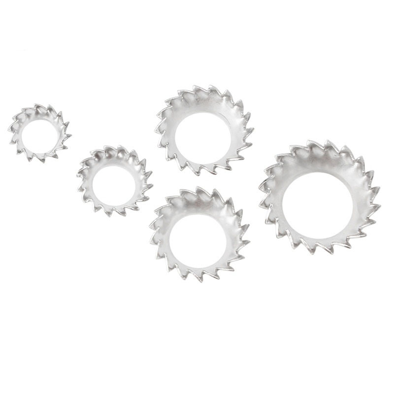 AnWasher glas barrchaolaitheis ceanglóir múnlaithe cón é a úsáidtear go príomha chun an bolt a chosc ó scaoileadh mar gheall ar chreathadh nó ualach trom. Tá fiacla beaga nó iomairí timpeall air. Nuair a bheidh sé suiteáilte sa suíomh ceart, cruthóidh na hiomairí brú seasmhach idir an cnó agus a dhromchla nasctha, rud a fhágfaidh go mbeidh an nasc níos sábháilte, níos faide agus níos lú seans ann go scaoilfear é.