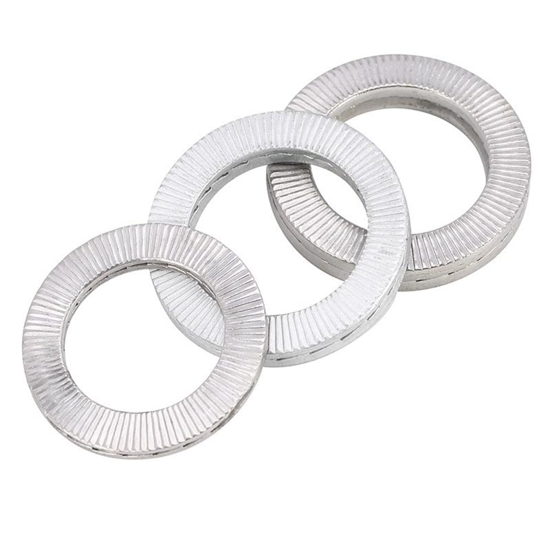 AnDhá washer féin -ghlasála cisealI meaisíní a chroitheadh go leor, smaoinigh ar ghléasanna innill, criosanna iompair, nó tuirbíní gaoithe. Tá siad go maith ag fanacht fiú nuair a dhéantar rudaí a rattled. Tá siad ríthábhachtach freisin maidir le rudaí nach féidir a bheith scaoilte i ndáiríre, cosúil le fionraí carranna, páirteanna traenach, nó róbait mhonarcha.