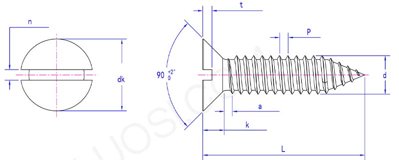 Is scriúnna féin-tapála iad na scriúnna tapping ceann countersunk slotted C-cineál. Tá a gceann cothrom agus tá imeall fána acu, chomh maith le sliotán díreach. Is féidir leat iad a scriú trí úsáid a bhaint as scriúire Phillips. Nuair a bheidh sé níos doichte, beidh an chuid countersunk flush leis an scriú, rud a fhágann go mbeidh siad oiriúnach do dhromchlaí mín. Is féidir leo féin-druileáil isteach i plátaí miotail nó plaisteacha gan gá le réamh-druileáil.