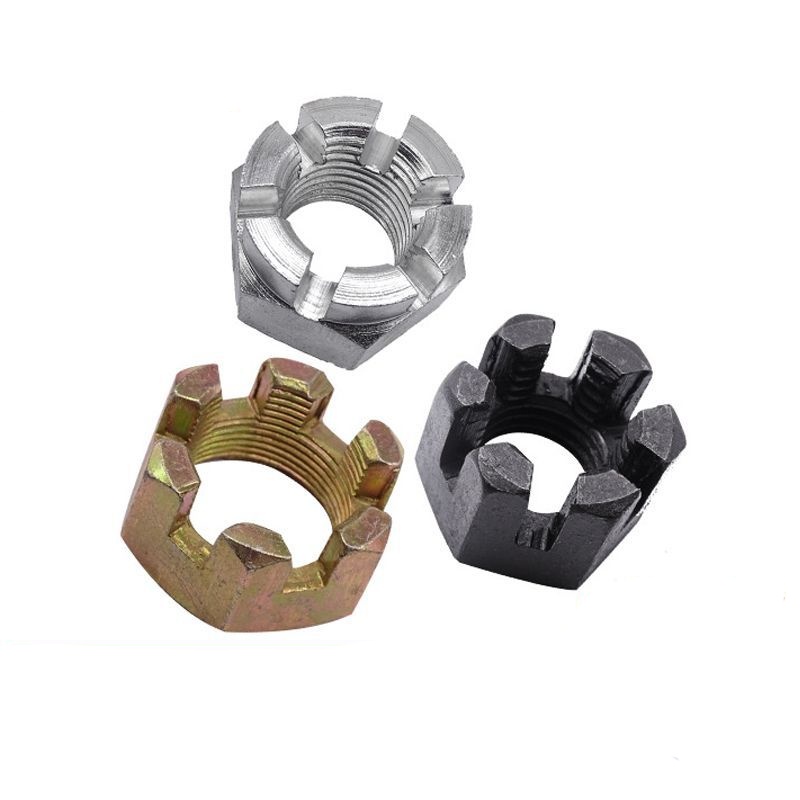 Tá cnó coróin neamh -inúsáidte le sliotán an -úsáideach in áiteanna ina gcaithfidh tú rudaí a sheiceáil nó a shocrú go minic. Insíonn an biorán cotter nó an sreang sábháilteachta is féidir leat a fheiceáil ar an bpointe boise má tá an glas fós ag obair. Chomh maith leis sin, tá sé éasca iad a chur ar nó iad a chur amach - níl ort ach an biorán nó an sreang a thógáil amach nó a thógáil amach. Fágann sé sin go bhfuil codanna socraithe ag na cnónna seo níos tapúla agus níos simplí ná úsáid a bhaint as gliúnna nó socruithe glasála casta. Laghdaíonn sé ar neamhfhónaimh agus déanann sé nósanna imeachta sábháilteachta le linn oibríochta níos fearr.