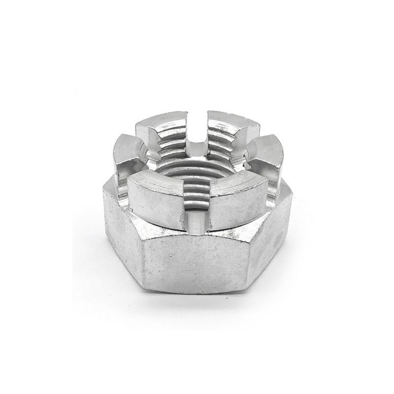 A: Is é an rud is mó faoi chnó coróin neamh -inúsáidte le sliotán ná an sliotán gearrtha isteach sa choróin. Nuair a dhéanann tú an cnó a dhéanamh níos doichte ar an mbolg, greamaíonn tú biorán scoilte (biorán cotter) trí pholl réamh-dhruileáilte i lorga an bolt agus ansin tríd an sliotán sin. Ansin cuireann tú foircinn an phionna ar ais. Stopann sé seo go fisiciúil an cnó coróin sliotáilte ó sníomh nó scaoileadh - fiú le creathadh an -láidir nó le hualaí gluaiseachta. Sin an fáth go n-oibríonn sé go maith do phoist thábhachtacha a bhaineann le sábháilteacht.