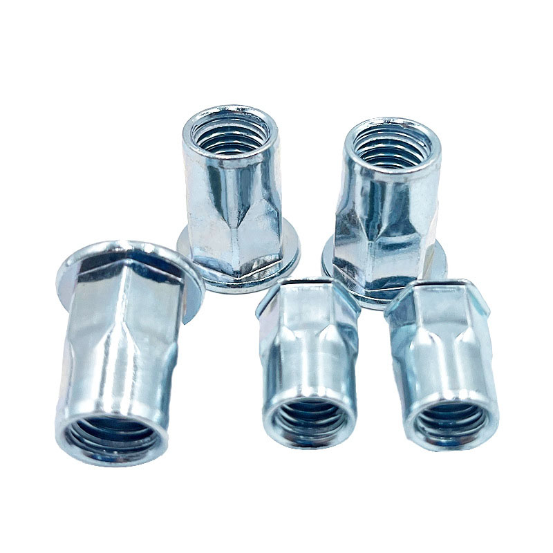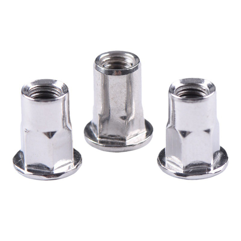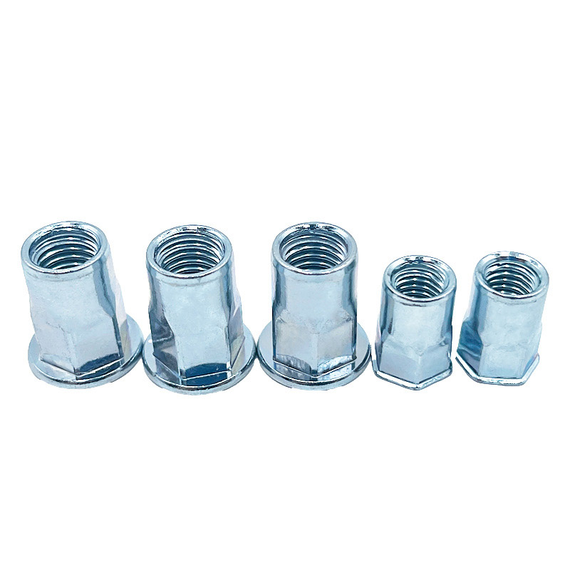Tá corp heicseagánach ag an Versatile Hex Rivet Nut. Murab ionann agus na cinn bhabhta, coimeádann an cruth seo é ó sníomh nuair a bhíonn sé suiteáilte. Is cuid lárnach dá dhearadh é sin - déantar é le luí isteach i bpoill heicseagánacha a mheaitseáil. Ar an mbealach seo, nuair a bhíonn tú ag géarú an scriú, ní rachaidh an cnó in éineacht leis. Tá cineálacha éagsúla ar fáil, cosúil le heicseagán iomlán agus stíleanna leath-heicseagán. Tagann na cinn freisin i roghanna cosúil le ceann árasán agus ceann cuntarach beag. Is féidir leat cibé ceann a oireann do do riachtanais a roghnú, cibé acu is mian leat go suífidh sé go bog leis an ábhar nó díreach tar éis beagán teilgean a bheith agat tar éis a shuiteáil.